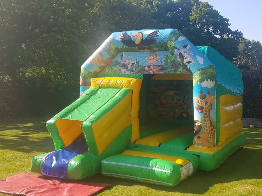 To book our Jungle themed combo (front facing slide) for your next event, simply contact us. Our friendly team will be happy to assist you and ensure that the bouncy castle slide combo is delivered and set up safely and efficiently.